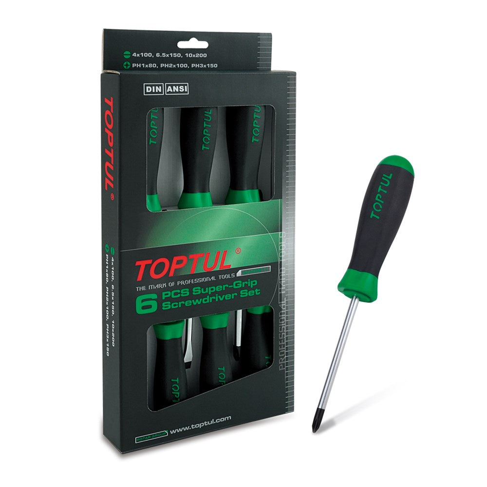 6 Pce Slotted & Phillips SuperGrip S/D Set - TOPTUL